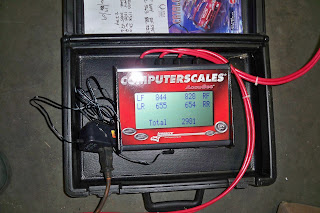 And thanks to our friend Dan, we got to play around and weigh the car, in an attempt to see if we had roughly the right springs in the car.  Under 3000lbs isn't bad if you consider where the car started!